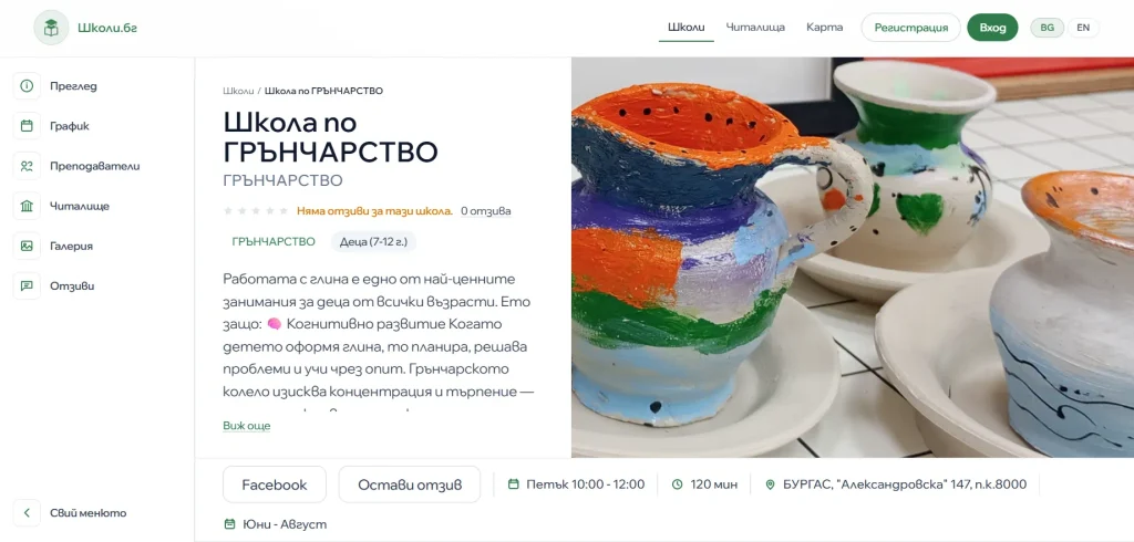 Към днешна дата платформата включва над 60 обекта в четири от най-големите градове в страната – София, Пловдив, Варна и Бургас. Това на този етап не е мащаб, който сам по себе си променя пазара, но е достатъчен, за да постави въпроса дали подобен тип централизирани каталози имат потенциал да подпомогнат развитието на екосистемата от школи у нас.